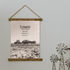 This scroll is sized 18 inches wide by 24 inches long at the canvas, rope + wood makes this scroll a little longer that 24 inches total.
