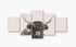 This split canvas design comes in 5 panels. Each panel is the same width and varies in height to create a center cascading effect. The backing on these canvases are open and contain a metal hanger centered at the top. Please note that the canvases may vary in size by 0.1"-2" after being wrapped around the wood